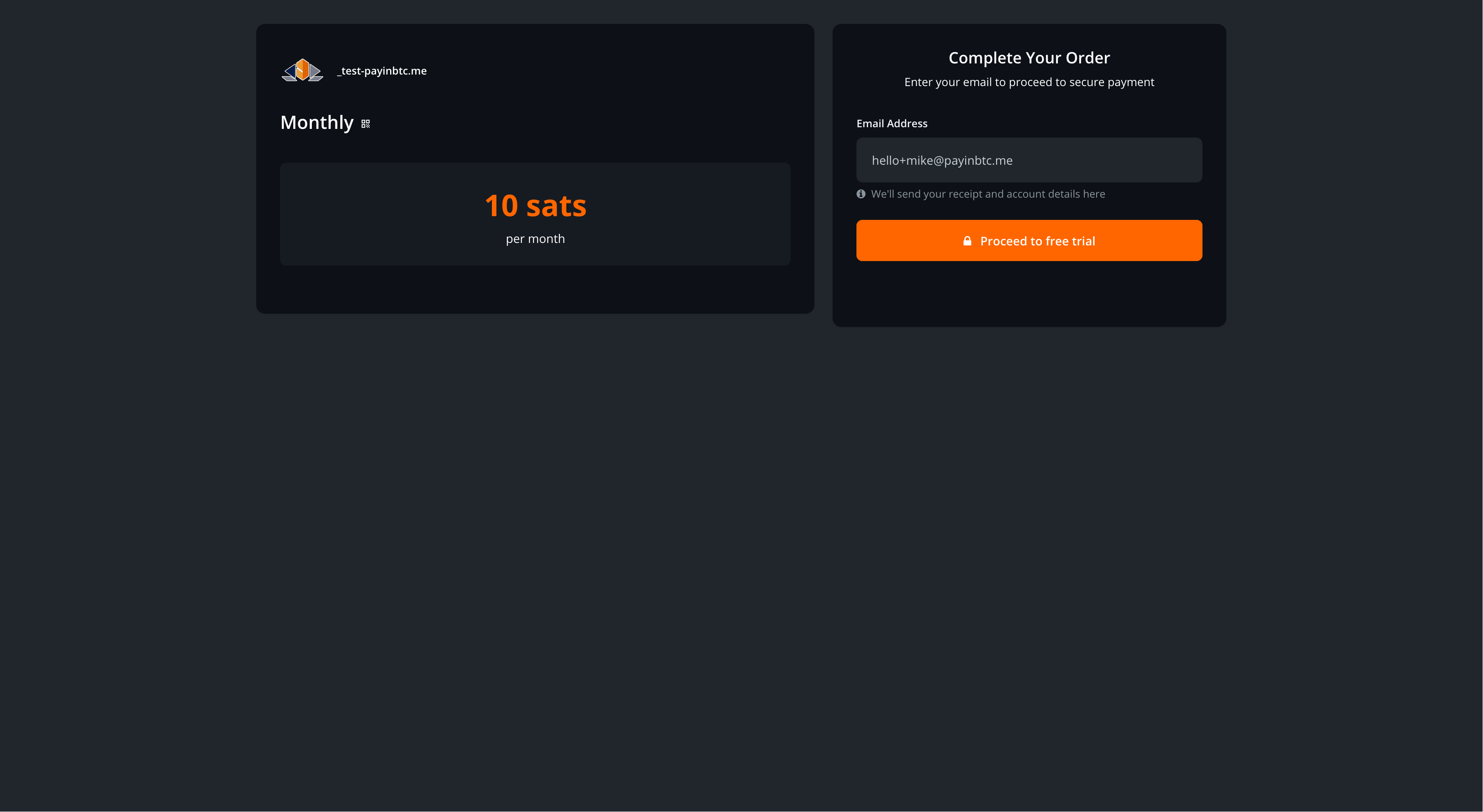Since we have the first month as a free trial, there is no need for a payment. Simply proceed to free trail and the subscription is activated. Once your free month is almost over you will receive a payment reminder.